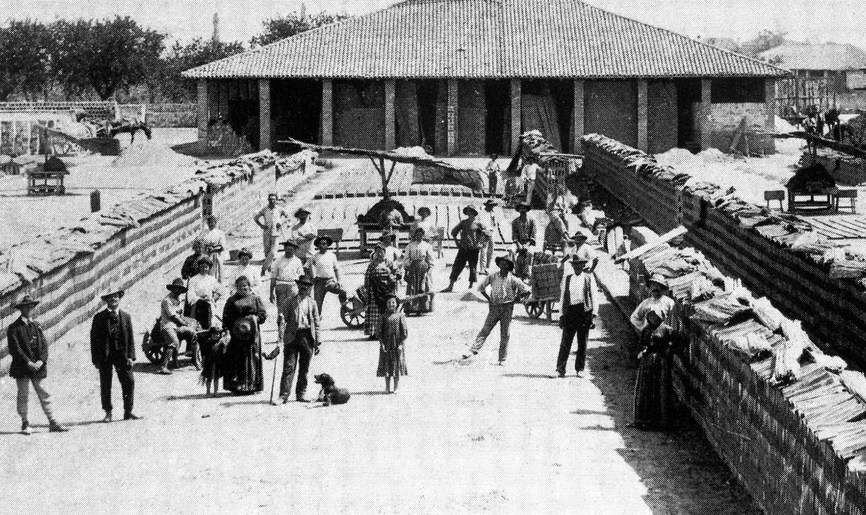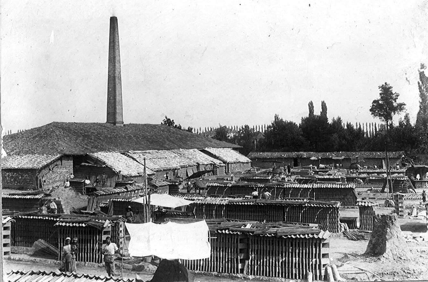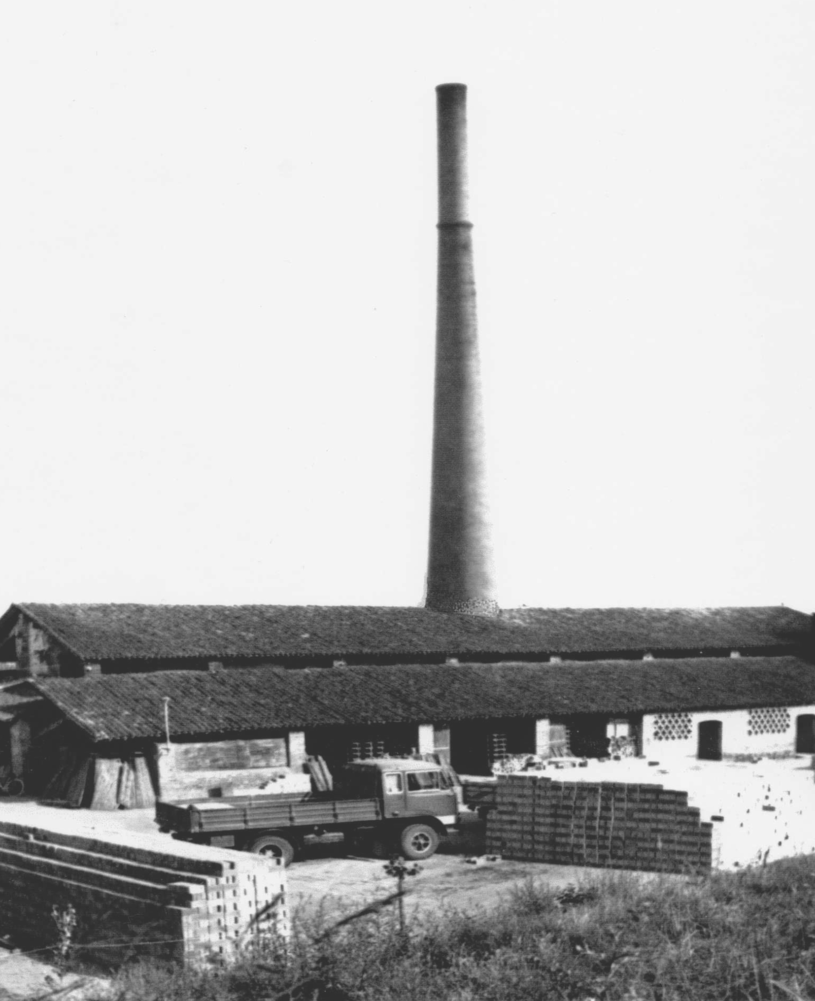 "Nei primi anni di attività della fornace, la materia prima per i mattoni d'argilla veniva reperita nell'area circostante. I laterizi venivano fabbricati a mano dai cosiddetti “quadarlen”, operai stagionali, pagati a cottimo, che lavoravano generalmente da aprile a settembre. Svolgevano questo lavoro intere famiglie, sia della zona, sia provenienti anche da molto lontano. Questi ultimi si accampavano in tende o piccoli capanni improvvisati con mattoni a secco, nei pressi della fabbrica. Ogni componente della famiglia aveva un compito differente gli uomini impostavano l'acqua e la terra impastavano e poi facevano i mattoni, mentre le donne e i bambini svuotavano gli stampi.